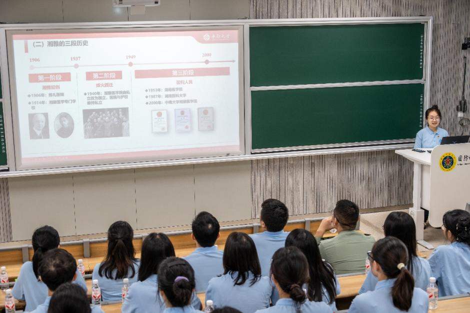 完成合影后,一场主题鲜明、内容丰富的互学授课活动火热开展,国防科技大学研究生院与中南大学湘雅三医院的学生代表轮流授课,以青春视角传递信仰力量,用专业情怀讲述使命担当,让两校师生在了解厚重历史的同时,更感受到专业精神与家国情怀的深度交融。