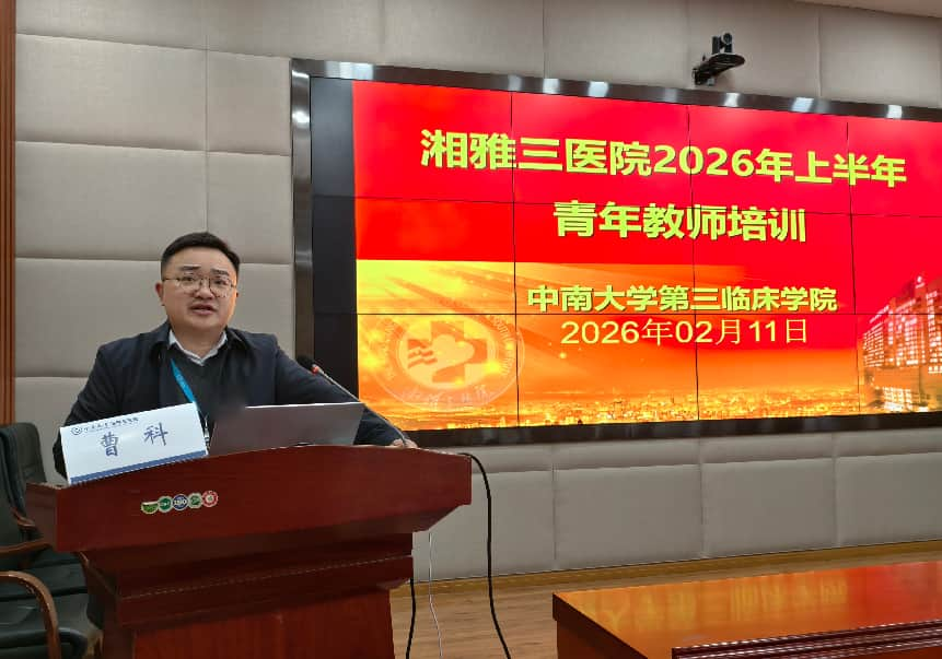 2月11日,中南大学第三临床学院“2026上半年教师培训”在科教楼三楼报告厅顺利举办。医院党委委员、副院长曹科,各教研室负责人、教学管理骨干、教学竞赛入围选手、脱产教师及师生代表等参加会议,会议由教务部主任庄权主持。