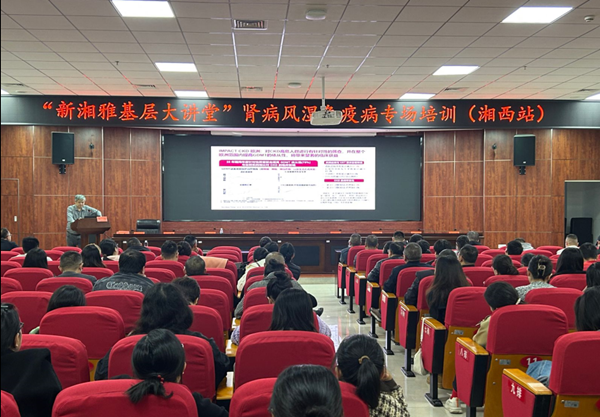 为深入践行健康中国战略,全面落实湖南省委、省政府“高水平医院结对帮扶医疗资源薄弱地区医疗机构”工作部署,2025年10月30日,“新湘雅基层大讲堂——肾病风湿免疫病专场培训”在湘西州人民医院成功举办。本次培训由湘西自治州卫生健康委员会主办,中南大学湘雅三医院与湘西自治州人民医院联合承办,标志着“新湘雅基层大讲堂”系列培训在湘西地区持续走深走实,推动省级优质医疗资源系统化、常态化下沉基层。培训开幕式由中南大学湘雅三医院社会服务中心赵颜忠主任主持。