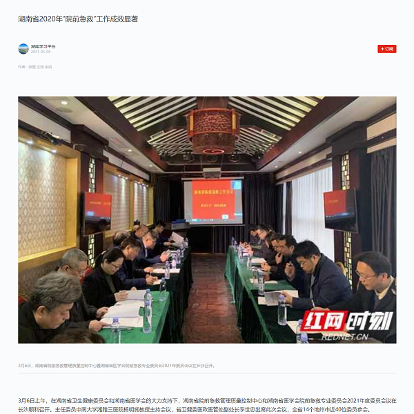 3月6日上午,在湖南省卫生健康委员会和湖南省医学会的大力支持下,湖南省院前急救管理质量控制中心和湖南省医学会院前急救专业委员会2021年度委员会议在长沙顺利召开。主任委员中南大学湘雅三医院杨明施教授主持会议,省卫健委医政医管处副处长李世忠出席此次会议,全省14个地州市近40位委员参会。