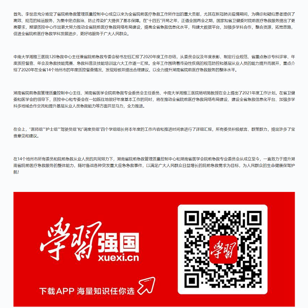 人民网 | 新华网 | 中华人民共和国国家卫生健康委员会 | 中华人民共和国教育部 | 湖南省政府 | 红网 | 湖南省卫生健康委员会 | 湖南省教育厅 | 中南大学 | 湘雅医学院 | 湘雅医院 | 湘雅二医院 | 协和医院 | 华西医院 | 西京医院 | 瑞金医院 | 复旦中山医院 | 武汉同济医院 | 中山医院