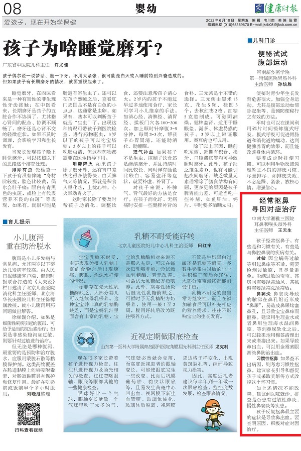 孩子经常抠鼻子,有些是和习惯有关,有些是与鼻腔鼻窦的疾病有关。