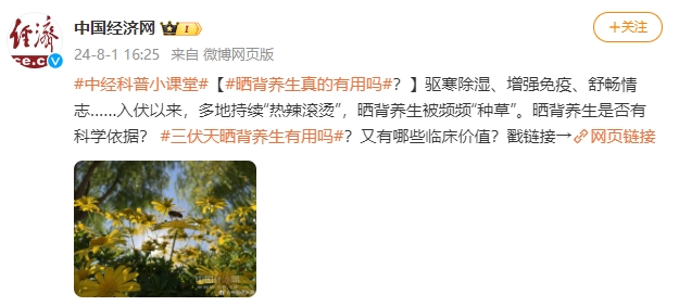 [上一篇] 中国经济网客户端:[经济日报]晒背养生真的...