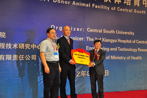 中南大学湘雅三医院王维教授领衔开展的猪胰岛移植治疗糖尿病,一直保持全国领先、世界先进水平。为了在异种胰岛移植治疗糖尿病领域达到世界最先进水平,为广大患者提供安全可靠的供体,中南大学与赛诺生物科技有限责任公司借鉴明尼苏达大学的经验,经过2年努力于今年7月建成了世界第二家异种移植(DPF)猪供体培育及胰岛制备研发中心。中心占地50亩,1500平米没有窗户的建筑室内完全密封,中心的建设标准完全根据联合国世界卫生组织标准,设有现代化空气过滤装置等多种设施,严格防止外来微生物和外来生物的侵入。猪食和餐具全部高压灭菌,饮水过滤后灭菌;猪排除的粪便和尿分两级排出,经污水处理系统充分净化后排入外界污水系统。在这种环境中,王维教授的科研团队成功地对湖南猪及贵州猪,进行杂交选育出具有自主知识产权的高质量新猪种。这种猪作为异种移植供体有三个突出特点,一是不带肝炎、禽流感、艾滋病等危险人畜共患疾病或遗传致病基因,二是胰岛含量极高,很容易分离出来,三是很容易喂养,可以大量提供使用。