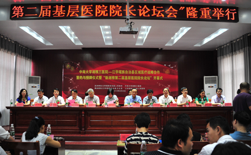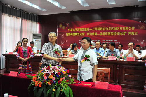 同日,中南大学湘雅三医院与江华瑶族自治县卫生局、道县卫生局、江永县卫生局、宁远县卫生局共同举办了“新湘雅-永州基层医院院长论坛”和“湘南心血管病学论坛”。在“新湘雅-永州基层医院院长论坛”会场,胡平安、肖瑢、丁四清、余晓、杨艳、刘佳、龚丽娜、李颖等围绕“医疗质量与安全管理”、“适宜医学人才培养与管理”、“护理安全文化的构建”、“导管风险管理”、“输液安全管理”、“绩效考核与护士评价体系”“压疮风险管理”、“小儿先心病的诊断与介入治疗”开展专题讲座。在“湘南心血管病学论坛”会场,杨侃教授、张志辉教授、江凤林副教授、王晓燕博士、曾丽雄博士、涂珊博士等,围绕“冠心病与心律失常”、“基层医疗机构心律失常诊治指南”、“心房颤动的现代诊治”、“ 晕厥诊治指南”、“心脏性猝死的防治 ”、“中国远程心电监测的应用”等主题作专题讲座。来自四县各乡镇医疗机构负责人,医务科、护理部主任及护士长,儿科、心内科主任及业务骨干300人参加论坛。