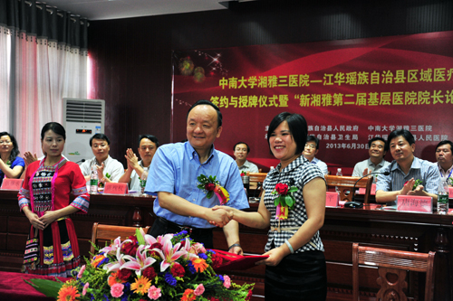 按照帮扶协议,湘雅三医院从6个方面对江华瑶族自治县医疗卫生事业进行帮扶:一是全科医生培训,为该县医疗机构进行全科医生规范化培训;二是住院医师培训,为该县培养合格的住院医师;三是开展“湘雅-耶鲁”医护人员进修培训,全年接收该县医疗卫生单位的医、护和管理人员进修;四是确定江华瑶族自治县人民医院为“中南大学湘雅三医院技术指导定点医院”,湘雅三医院将提供专家蹲点服务、学术科研援助、适宜技术推广、信息资源共享、双向转诊绿色通道等服务;五是湘雅三医院在江华瑶族自治县举办“基层医院院长论坛”,开展医疗新技术、新方法,医院管理新理念,区域医疗合作动态,卫生政策,基层医改研讨等一系列培训;六是开展远程医疗项目,为该县医疗机构提供远程疾病诊断、疑难病例讨论、学术会议学习等服务。