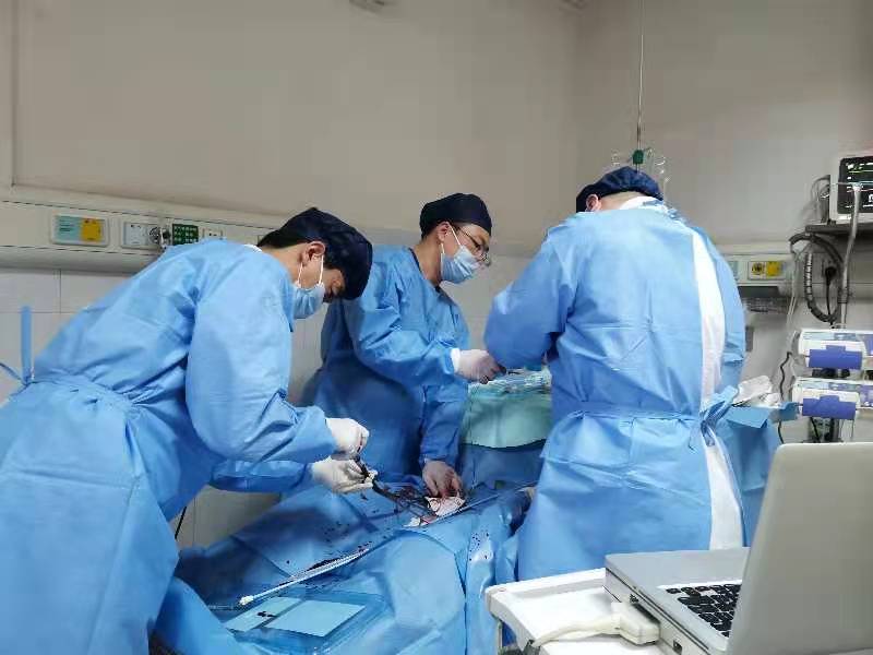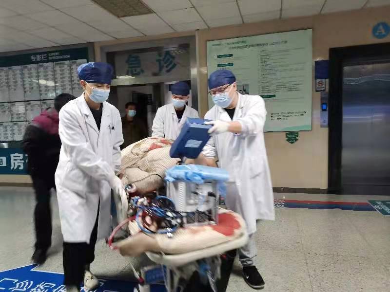 10点30分,ECMO中心赵尚平主任和余灿医生携带设备到达救治现场,在超声引导下准确定位,消毒、穿刺、置管……每一个环节干脆利落,有条不紊,配合默契,在最快的时间里,ECMO成功运转。经过ECMO人工膜肺的血液,由黑紫色迅速变为鲜红色,再次注入患者体内。随着血压及血氧情况的改善,患者重新恢复自主心律,这令在场的救治人员兴奋不已,所有人悬着的心都放下了。每每看到患者转危为安,医护人员便觉得这是最好的新年礼物。11点40分,患者病情趋于平稳,在医护人员的护送下,患者转入ICU继续治疗。