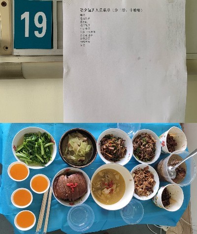 食物在中国人心中的地位是举足轻重的,尤其是年夜饭更是被寄予了丰富的韵味。年夜饭,吃的是团圆,念的是乡愁,忆的是家人的牵挂。护士长苏妈妈自然早早地就把科室人员的年夜饭安排妥当了,荤素搭配,好吃美味。有腊肉、土鸡钵、牛肉、卤猪肚………满满当当的都是家里的味道,菜单贴在墙面上,成了“不一样的床头卡”,虽然今年二十九晚上不能和家人一起守岁,但取而代之的是另一种特殊的跨年,品尝的是另一番“年味”。