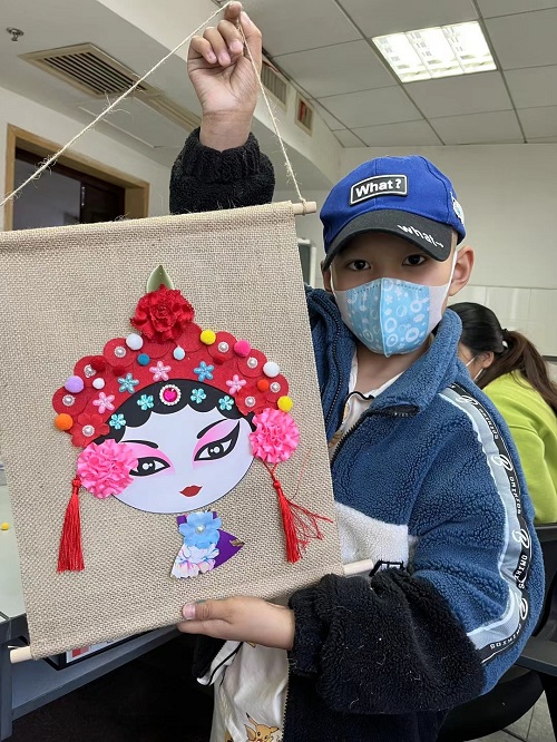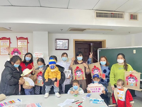 医务社工与志愿者们还为小朋友精心准备了京剧花旦挂饰,她们向小朋友们科普京剧相关的传统文化知识,让孩子们把欣赏的目光投入到有着悠久历史的传统艺术上,孩子们听得津津有味,拿着手中的挂饰爱不释手。