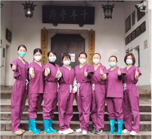 进入湖大后,在医院的统一安排下,健康管理中心八名队员分派至各个区域进行核酸采集。作为援张的抗疫老兵,杨斌芳主动请缨与林芝、石亚芬进入红码区采集。在红码区,为最大限度的防止疫情扩散,队员需要每日多次徒步往返7层红码楼区上门采集,长长的楼道,绑在腰间的医疗废物收集袋在密闭防护服的加持下,似乎都变成了一座大山,汗流浃背,憋闷心慌,实在不行就停下来歇歇再干,即使工作到凌晨,却没有任何一个人抱怨或退缩。黃码区和绿码区虽然风险相对低一点,但任务量大,队员们争分夺秒、废寝忘食,无数次弯腰、下蹲、抬手、采样、消毒......他们有人腰都累得直不起来,有人手上的旧伤复发,锥心地痛,但没有人叫苦也没有人喊停,5天的高强度工作保证了本次核酸检测任务的圆满完成。他们既打了一场漂亮的抗疫战,也给广大师生吃下了“定心丸”。