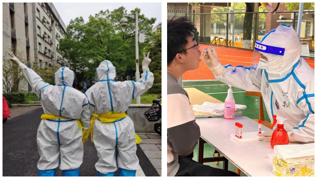 3月30日,长沙各区开展全员核酸检测,卫健委再次下达任务,健康管理中心主动响应,关闭四楼全面体检区组建第三批抗疫机动队。曹霞、陈茗、陈妮妮、肖渊茗、赵琳琳、罗水源、曾文、易文、漆艳玲、姚雯钊、刘郸、王慧、刘小芳、刘微、朱喜、胡小平、段明勋、陈玲、张珺、曹娇20位医护“抢”到名额,第二天便“化身”大白,深入各街道、社区开展核酸采集工作。无论是日晒还是雨淋,所有机动队队员以专业的能力,标准化的操作和认真的工作态度获得了社区工作人员和老百姓的一致点赞。截至目前,上述人员已参与三轮检测工作,完成近五万人次核酸检测。