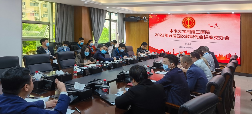 4月14日上午,中南大学湘雅三医院工会召开2022年五届四次教职代会提案交办会。医院党委副书记、工会主席杨飞龙出席,工会、提案承办职能部门负责人参加会议。