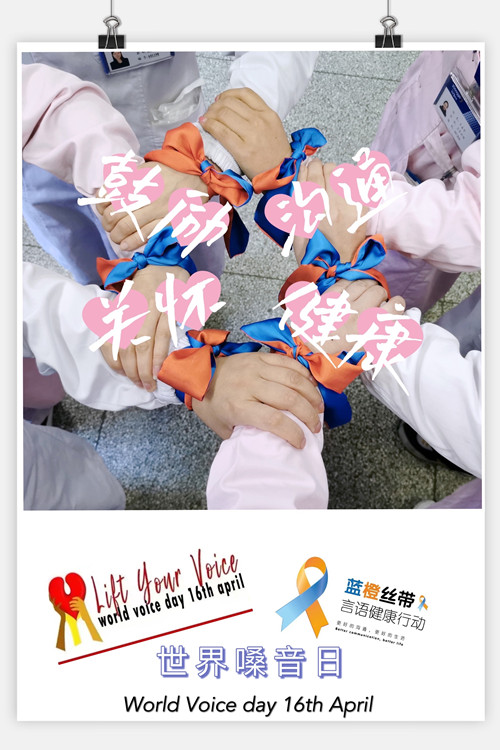 据统计,正常人群中嗓音障碍疾病患病率为3%—9%;教师和销售人员等特定群体中出现嗓音问题者多达70%。随着社会的交流日益频繁以及环境污染加重等原因,嗓音相关疾病逐年增多,严重影响了人们的生活质量和身体健康。此次活动亦是我院耳鼻咽喉科第二次响应蓝橙丝带言语健康公益行动。蓝橙丝带,不只是言语的象征,更是人民健康意识提升的标志。希望我们的鼓励、关怀和帮助,能让患者更好的沟通,更好地生活。
