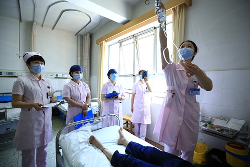 4月21日,在第111个“国际护士节”即将到来之际,中南大学湘雅三医院理部联合工会共同举办的“中国梦•劳动美——留置针静脉输液操作技能竞赛”决赛顺利举行。医院党委副书记、工会主席杨飞龙,工会常务副主席熊晓云,党委宣传部主任李姗,护理部主任严谨,20名晋级决赛的选手及护理静疗小组核心成员出席开幕式。