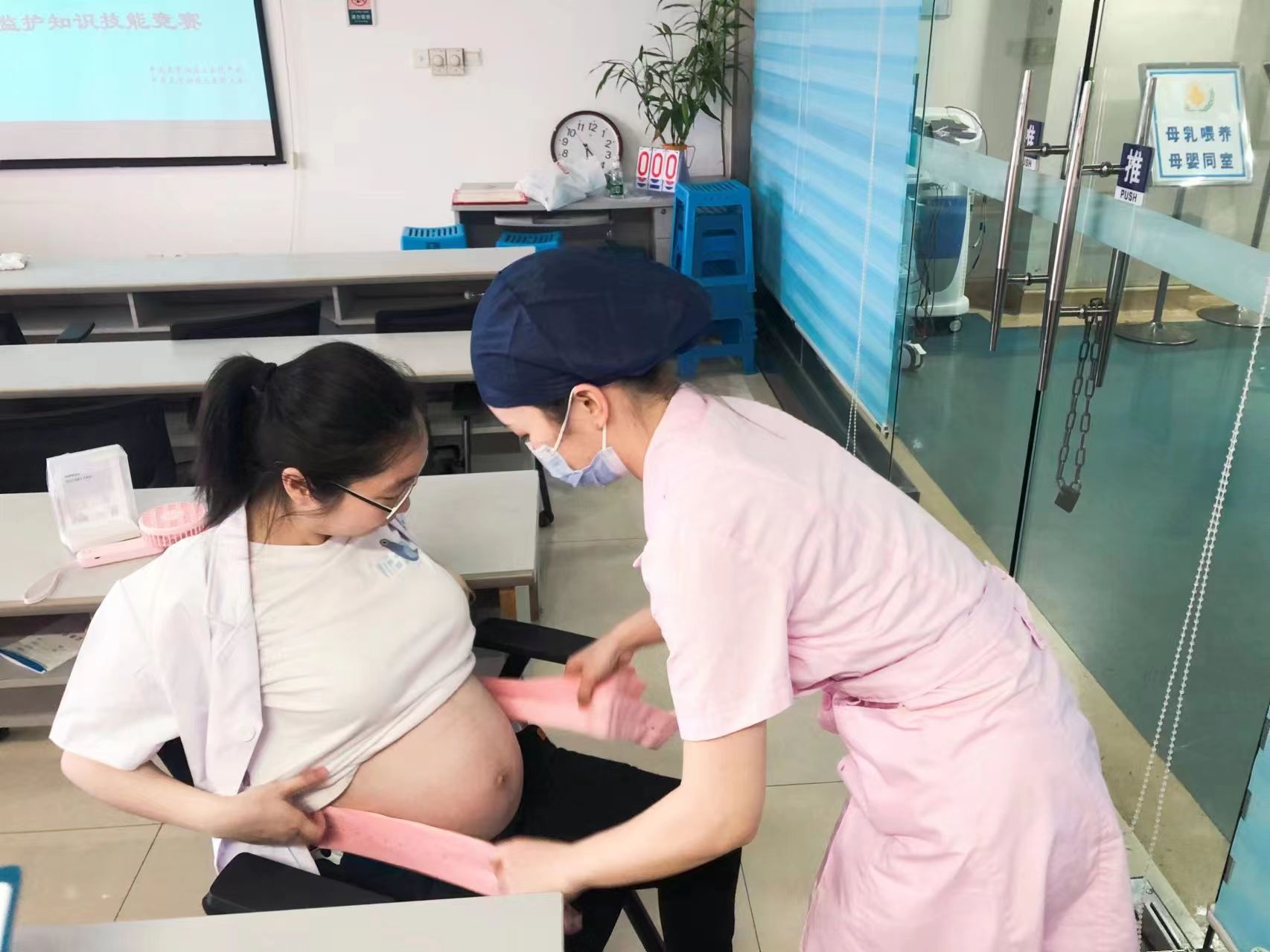 此次技能竞赛主要分为“胎监结果判读”和“胎心监护操作”两个部分。在胎监结果判读比赛中,现场气氛十分欢快,7个比赛小队积极回答问题,可见扎实的专业知识储备和极快的反应能力。在胎心监护操作比赛中,各位选手沉着冷静,操作有条不紊,对待产妇细心耐心,展现出产科护士和助产士的风采。