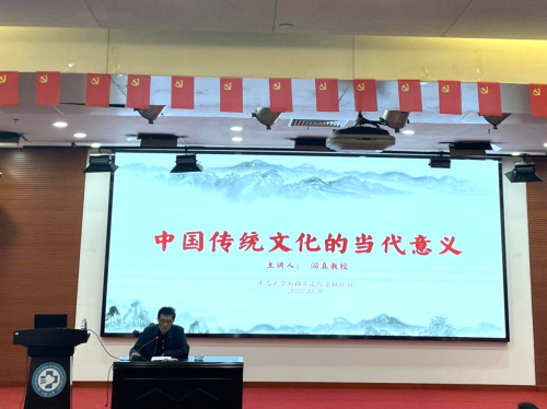 10月26日下午,中南大学湘雅三医院脊柱外科康复科党支部主办的科室文化建设系列讲座之《中国传统文化的当代意义》在外科楼二楼学术报告厅顺利举行。本次讲座特邀中南大学文学院教授、中国作家协会会员、湖南省作家协会副主席阎真教授主讲,由脊柱外科主任邓幼文教授主持。医院党办主任许泽华、党委宣传部主任李姗、第五党总支部书记余希、院团委书记程海威、护理部主任严谨受邀出席,来自各临床科室的医护人员、研究生等逾100人参会,共同开启了一场文化复兴与现代思维相碰撞的文化盛宴。