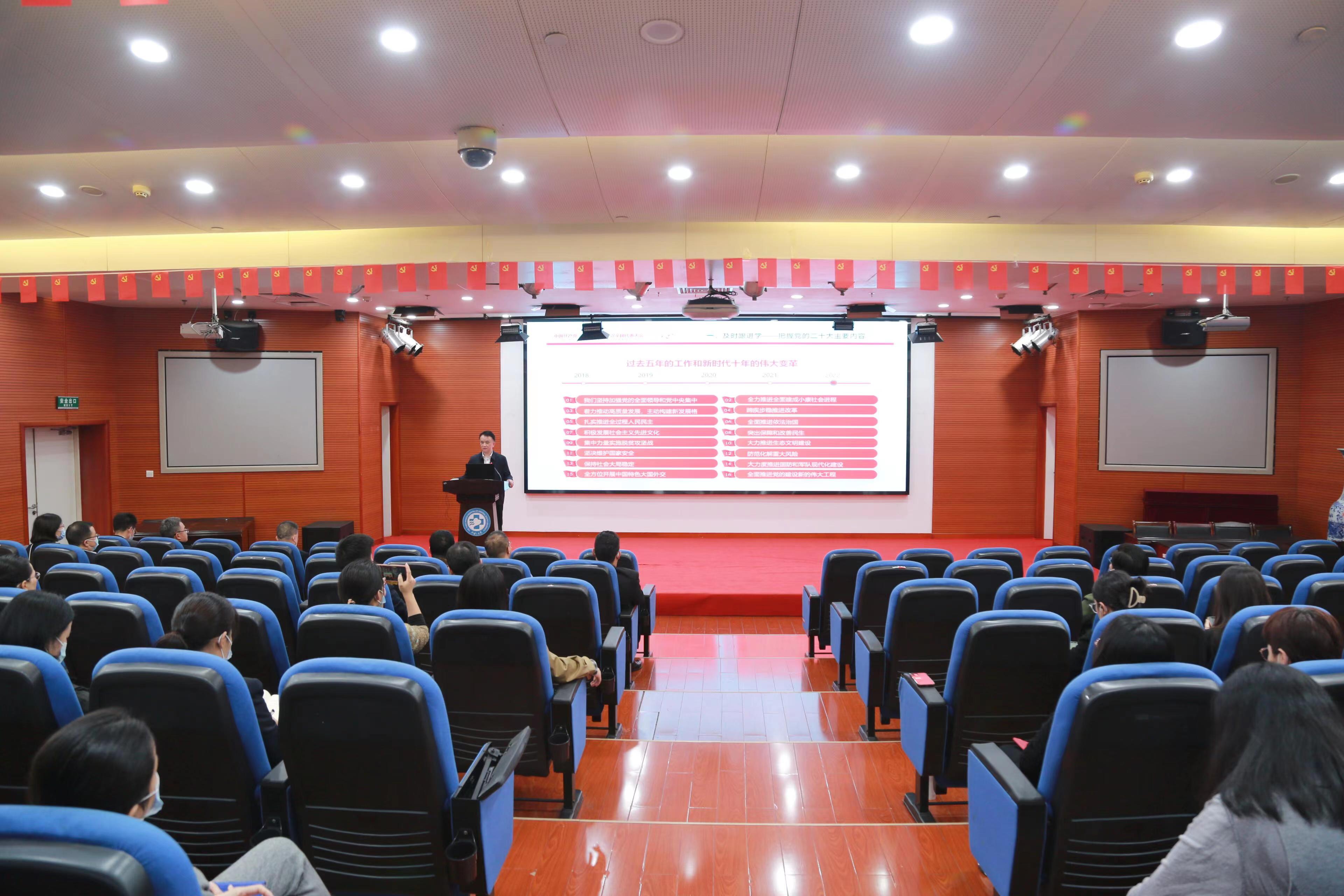 何庆南书记围绕“及时跟进学”“原原本本学”“结合实际学”三个主题领学党的二十大精神。他从党的二十大概况、过去五年的工作和新时代十年的伟大变革、开辟马克思主义中国化时代化新境界、新时代新征程中国共产党的使命任务、十二条基本方略、谱写新时代中国特色社会主义更加绚丽的华章等内容展开阐述,特别解读党的十八大以来经历的对党和人民事业具有重大现实意义和深远历史意义的三件大事:一是迎来中国共产党成立100周年,二是中国特色社会主义进入新时代,三是完成脱贫攻坚、全面建成小康社会的历史任务,实现第一个百年奋斗目标。从现在起,中国共产党的中心任务就是团结带领全国各族人民全面建成社社会主义现代化国家、全面推进中华民族伟大复兴。“医疗卫生领域改革处于深水区,医院高质量发展处于关键期”。