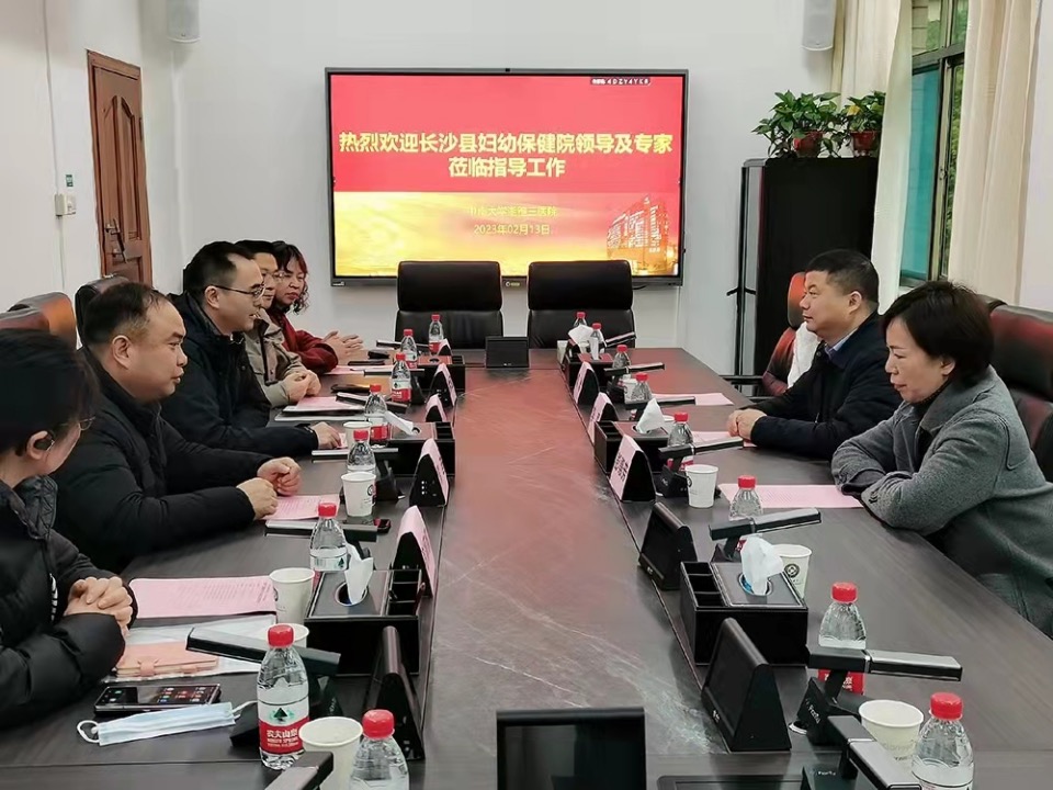 2月13日上午,长沙县妇幼保健院院长李军、保健部部长彭惠芳、妇科主任陈莺一行来湘雅三医院交流。中南大学湘雅三医院副院长孙传政受邀出席,妇科主任徐大宝、生殖中心主任彭婀娜、妇科护士长戴婵媛参加交流会。会议由创建办副主任章迪主持。