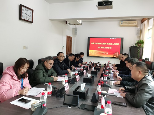 2月15日上午,新晃侗族自治县(以下简称“新晃县”)人民政府副县长梁舒健、副县长刘文龙、县人民政府办公室副主任曹传树、县人民医院党委书记杨桂林、县卫生健康局股长胡通勋、县人民医院医疗联络部部长刘国海一行到访湘雅三医院,召开对口帮扶新晃县工作会议。医院副院长孙传政出席,相关职能部门负责人参加会议,医务部副主任刘作良主持会议。