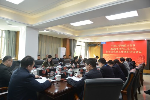 2月15日,中南大学湘雅三医院党委召开2022年度党总支书记抓基层党建工作述职评议会。党委书记何庆南,党委副书记、院长江泓,院领导杨飞龙、张劲强、费云、左笑丛、曹科、孙传政出席会议,党群部门负责人、党总支书记参加会议。会议由党委副书记杨飞龙主持。