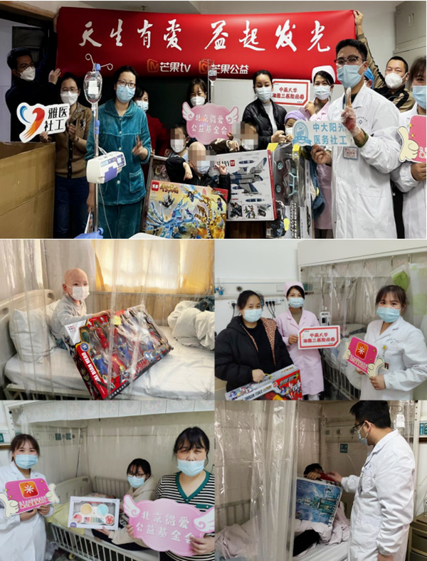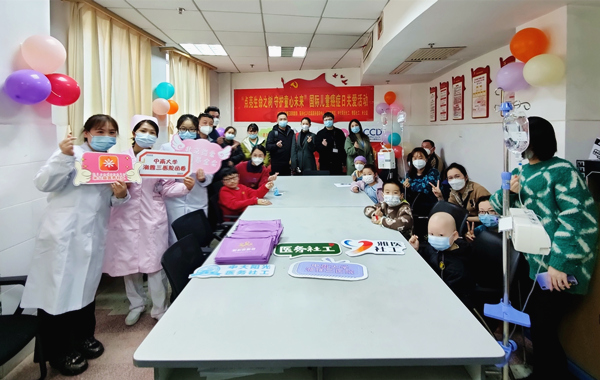 2023年2月15日是第十个“国际儿童癌症日”。当天下午,中南大学湘雅三医院团委、医务社工与志愿服务指导中心联合儿科五病区医护团队,以及北京微爱公益基金会、芒果公益平台、米公益、广州市金丝带、湖南省雅医医务社会工作中心、长沙中大阳光社工服务中心等公益伙伴开展“点亮生命之树·守护童心未来”医务社工与志愿服务病房关爱活动。医院主办部门、科室及合作公益机构相关负责人,部分医护人员、驻点医务社工、爱心志愿者和病房患儿及家属等共同参加了活动。