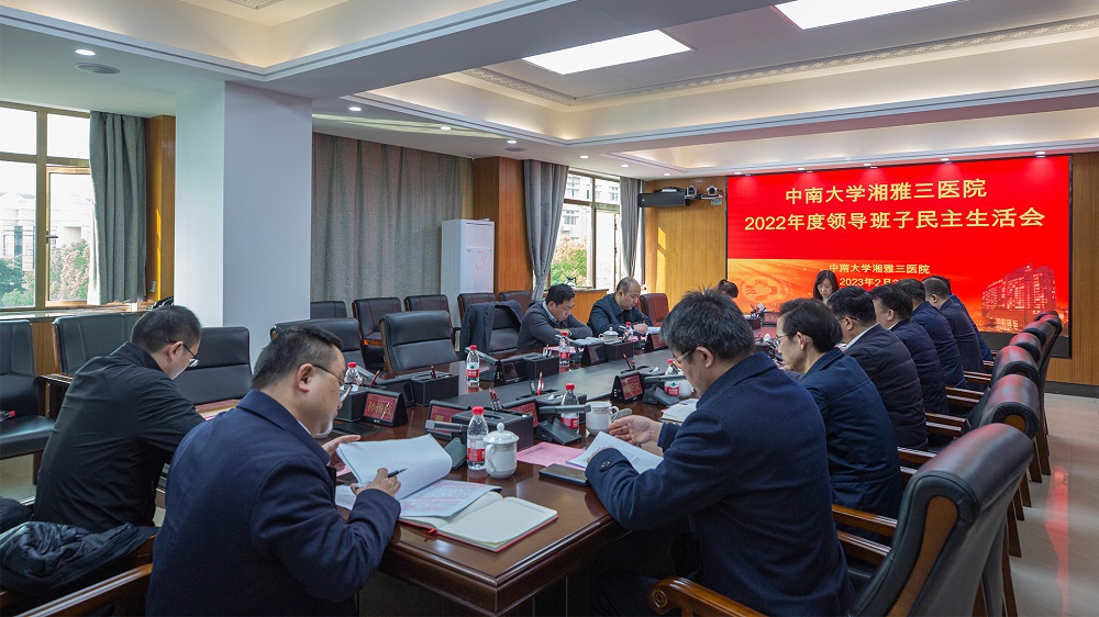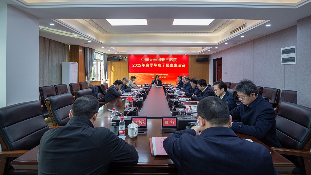 按照学校统一部署,2月20日上午,中南大学湘雅三医院召开2022年度领导班子民主生活会。会议以全面贯彻习近平新时代中国特色社会主义思想,深刻领悟“两个确立”的决定性意义,增强“四个意识”、坚定“四个自信”、做到“两个维护”,团结带领党员干部群众以奋发有为的精神贯彻落实党的二十大作出的重大决策部署为主题,紧密结合医院实际,进一步把思想和行动统一到党的二十大精神上来。医院党委书记何庆南主持会议,全体院领导参加会议,中南大学党委常委、副校长陈立章到会指导并作点评讲话,督导组成员、党委组织部副处级组织员张志宏参加会议。