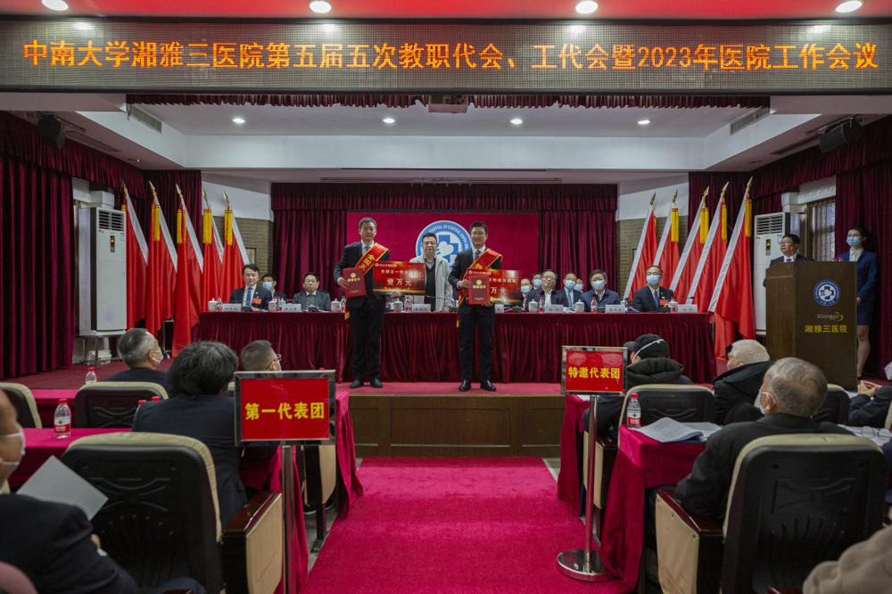 2月26日,中南大学湘雅三医院第五届五次教职工、工会会员代表大会暨2023年医院工作会议在门诊楼五楼多功能厅隆重召开。