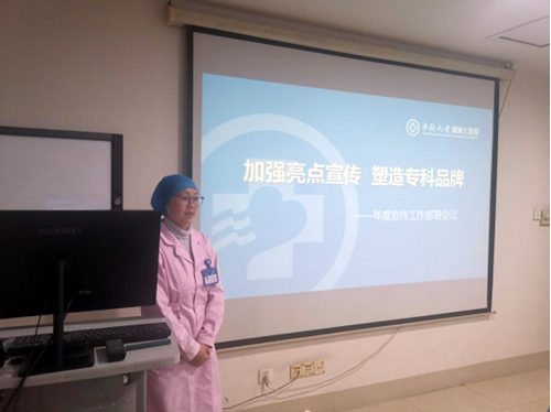 科室青年骨干张雪恒以“加强亮点宣传,塑造专科品牌”为主题作工作汇报,分别从年度总结、年度计划、面临的困境及对策思考、年度目标四方面客观深刻地分析了科室宣传工作的现状,提出了切实可行的改进方案,确立了科室宣传工作的顶层目标。