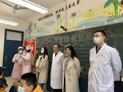 3月17日下午,为迎接第23个世界睡眠日,中南大学湘雅三医院耳鼻咽喉头颈外科党支部联合院团委在博才咸嘉小学围绕“儿童鼾症”问题,以“良好睡眠,健康之源”为主题开展了科普义诊活动。科室副主任李和清教授、护士长杨丽带领8名医护人员开展此次活动,第三党总支书记朱锐、团委副书记李潇潇受邀出席,活动现场共60余名师生参加。