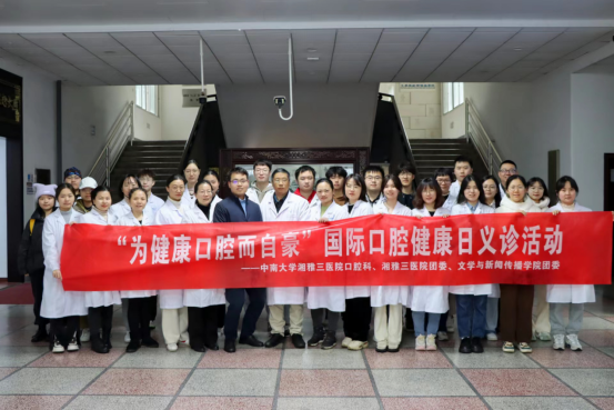 3月19日上午,在2023年“世界口腔健康日”即将来临之际,中南大学湘雅三医院口腔科和中南大学湘雅三医院团委、医务社工部与志愿服务指导中心,联合中南大学文学与新闻传播学院团委在中南大学校本部南校区文法楼前坪及大厅面向学校师生开展了一场健康口腔宣教科普及义诊活动。医院口腔科二十余名医护人员及院团委、文学与新闻传播学院团委相关负责人参加活动。