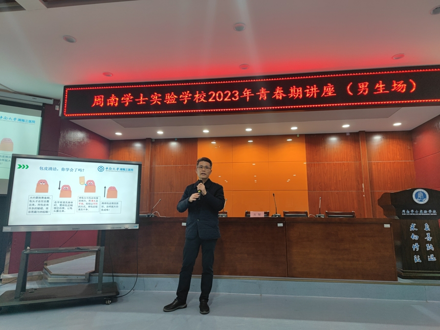 青春期是儿童到成年的过渡转折阶段,在这个阶段,第二性征发育、生殖系统成熟是孩子们进入青春期的突出表现。伴随身体的发育,孩子们带着好奇探索身体的秘密,同学之间互相讨论相关话题特别常见,周南学士实验小学部的老师们第一时间发现了孩子们的情况。3月24日,中南大学湘雅三医院泌尿外科志愿科普团队受邀走进校园,普及青春期生殖健康知识。泌尿外科男性病中心主任龙智教授、29病区崔丽娜护士长分别担任男女专场的授课老师,围绕“生命的诞生与成长”“男女生的身体不同”“青春期的来临信号”等话题与同学们进行了交流,本次讲座线下迎来了718位同学聆听,线上听讲座人数220人左右。