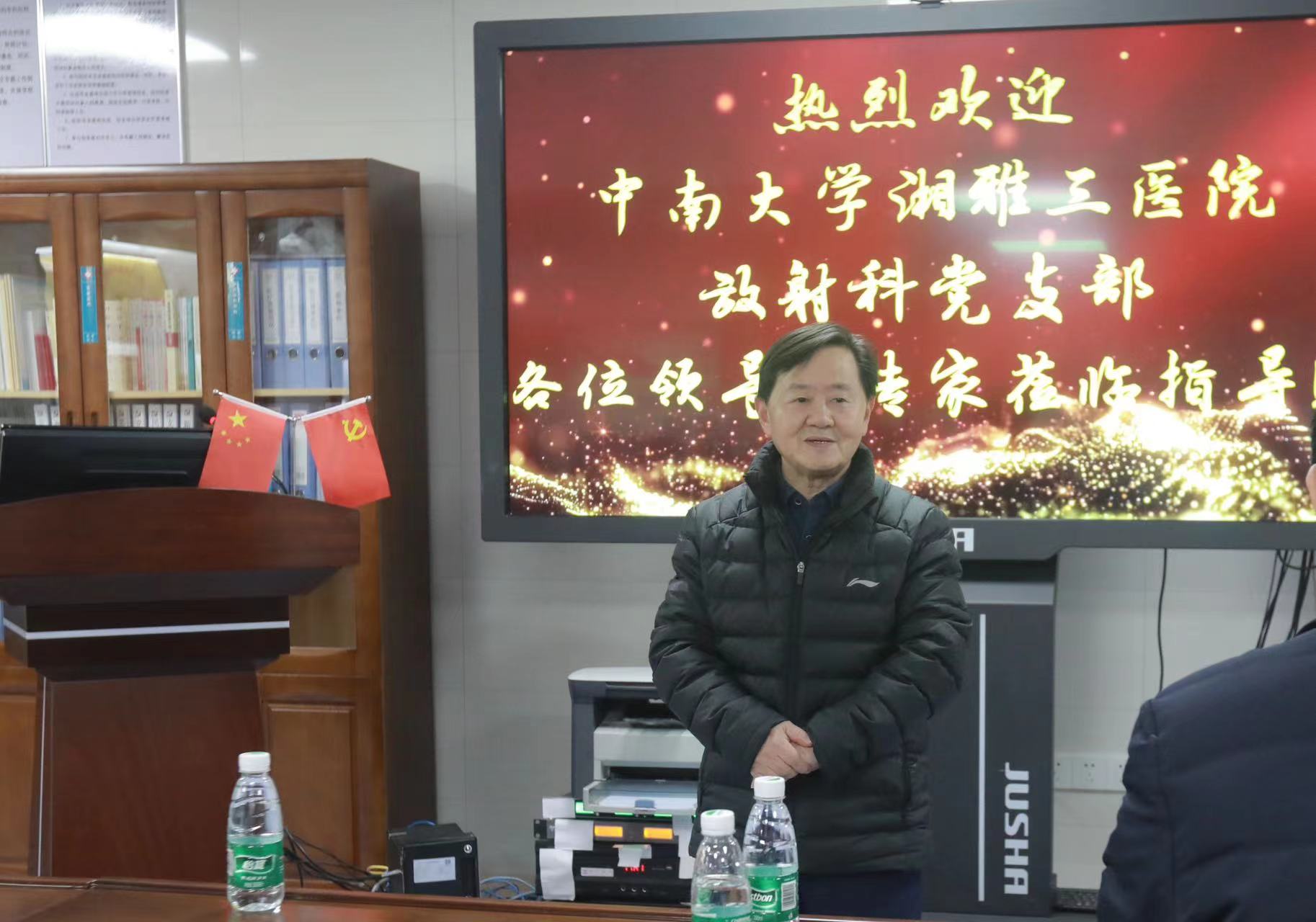 接着,湘雅三医院首席科学家、放射科党支部原书记王维教授发表讲话。他指出,湘雅三医院放射科一直以来与岳阳市中心医院放射科有着良好的关系,他根据岳阳市中心医院放射科现有的学科特点和科研方向,指出其可发力前进的的两个方向,并提出今后两院放射科可在技术交流、党建和服务质量上加强合作,以更好地为人民群众服务。