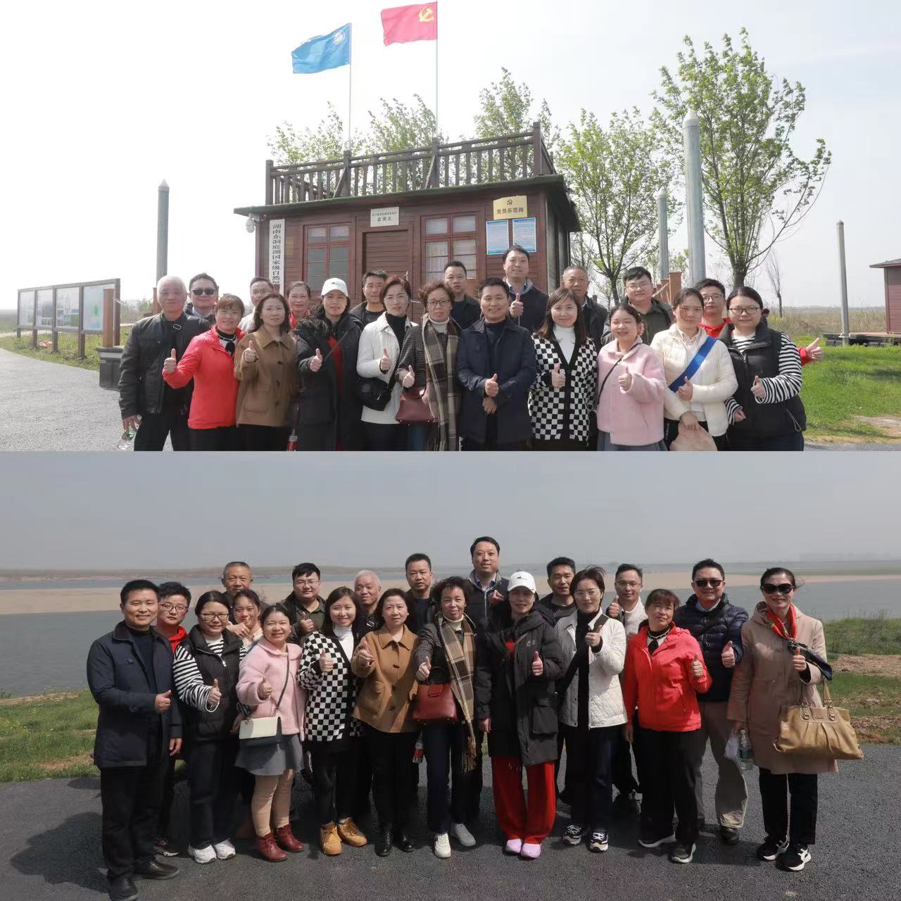 活动之后,放射科党支部和岳阳市中心医院放射科党支部全体党员前往岳阳君山华龙码头践行红色足迹、开展户外团建活动。2018年4月25日,习近平总书记踏上湖南省岳阳市君山华龙码头,察看非法砂石码头取缔及整治复绿、湿地修复情况,并勉励大家继续做好长江保护和修复工作,守护好一江碧水。五年来在岳阳市君山区的大力整治下,华龙码头一片已恢复了往日的绿意盎然与生机蓬勃。全体党员们在沐浴春风暖阳、欣赏大美洞庭的同时,重温了二十大提出的“推动绿色发展,促进人与自然和谐共生”的基本方略,切身感受了“生态优先,绿色发展”的理念,一致表示时刻与党和人民一起,为人与自然和谐共生的中国式现代化道路助力。