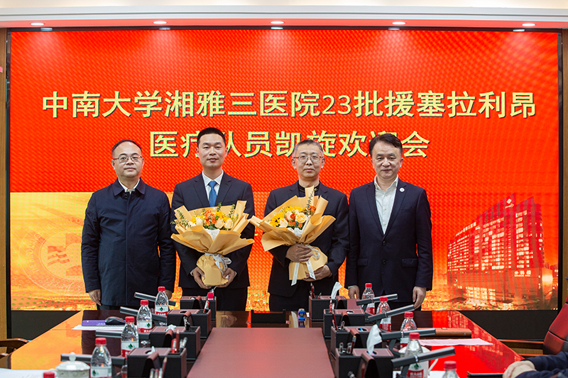 3月28日上午,中南大学湘雅三医院在综合楼一会议室举行第23批援塞拉利昂医疗队员凯旋欢迎会,迎接医疗队员肖际东、王潇圆满完成援外医疗任务、顺利凯旋。医院全体领导班子成员、相关科室及职能部门负责人参加会议。欢迎会由党委副书记杨飞龙主持。