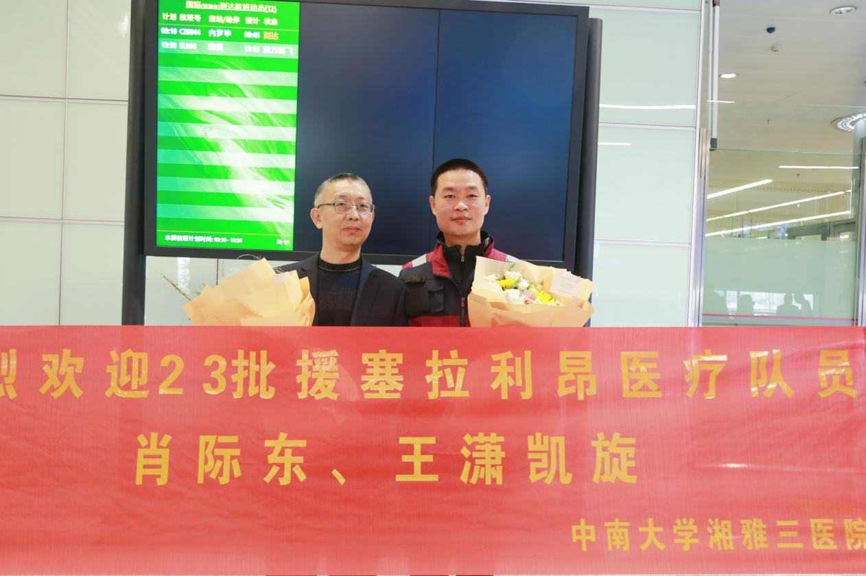 据悉,3月9日上午,中南大学湘雅三医院医护人员肖际东、王潇圆满完成援外医疗任务,与中国23批援塞拉利昂医疗队其他队员一起,乘机抵达长沙黄花国际机场,全部平安归来。