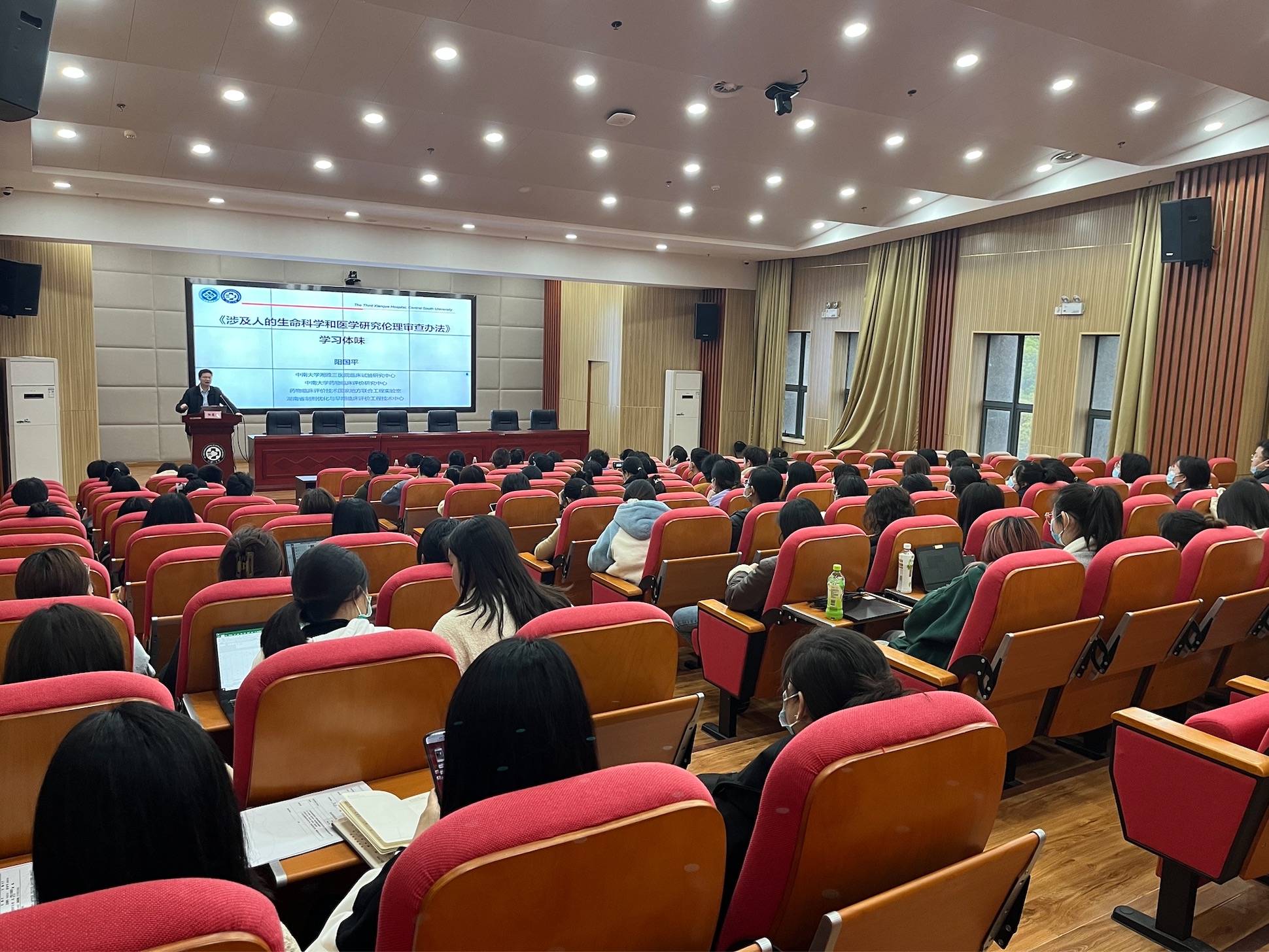3月29日下午,中南大学湘雅医学院与湘雅三医院在医院科教楼三楼联合开展“《涉及人的生命科学和医学研究伦理审查办法》要点解读”培训会。此次培训由湘雅医学院副院长黄志军主持,临床试验研究中心主任阳国平做讲座。