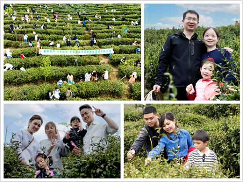 在这个春暖花开的时节,团队一行来到黑麋峰星空茶园,这里位于平均海拔500米的山上,常有云雾缭绕,因而以高山云雾茶而出名。眼下正是春茶的采摘时节,绵延在山头的大片茶树已现出春色。忙碌多日的职工们在这难得的闲暇时光里,走进茶园,亲近自然,和孩子们一起享受美好的亲子时光。参与采茶的职工和家属们热情高涨,须臾之间,茶篓里便盛满了鲜嫩的芽尖,大家兴奋的展示着自己的采摘成果,用相机定格住一个个美好的瞬间。