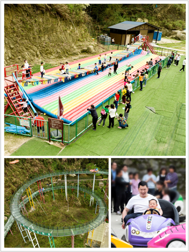 午饭过后,大家来到黑麋峰欢乐谷,这里不光是孩子们的乐园,大人们也感受了一把童真的快乐,既体验了惊险刺激的玻璃滑道漂流,又沉浸在射击、碰碰车,摇摆桥等儿童游乐项目的欢乐气氛中。整个欢乐谷充满了欢声笑语,大家尽情享受这和谐幸福的快乐时光。