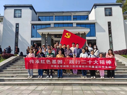 4月1日,中南大学湘雅三医院脊柱外科康复科党支部赴长沙县开慧镇开展“传承红色基因 践行党的二十大精神”主题党日活动。活动旨在践行二十大会议精神,讲述红色历史故事,缅怀革命先烈的英勇事迹,进一步打造学习型、创新型党组织。