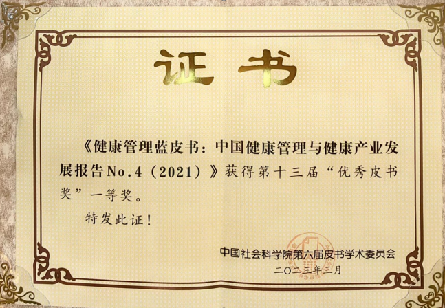据悉,本届皮书评奖共有425种2021年版皮书符合优秀皮书奖评选要求,经初评、复评后由中国社会科学院第六届皮书学术委员会进行终评,最终52部皮书获得第十三届“优秀皮书奖”,其中一等奖仅15部。《健康管理蓝皮书2021》“击败”众多10年以上资深皮书,以总评分第四名的好成绩荣获一等奖。