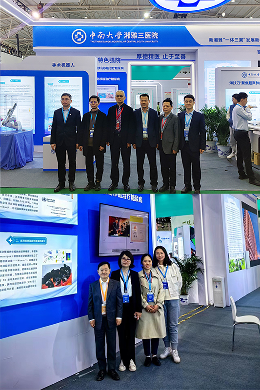 本届健博会上,中南大学湘雅三医院展区以新湘雅科技创新为主题,全面展示了医院的特色优势学科、医疗新技术、科技创新成果项目等。在国产手术机器人领域,朱晒红教授团队完成了国产腔镜手术机器人的首例临床应用,不断奋进、持续探索,最终在临床手术方面实现了从无到有、从简单到复杂、从单学科到多学科的突破和积累,成为首个取得Ⅲ类医疗器械生产许可证的国产腔镜手术机器人,实现产业化落地,标志着我国手术机器人的国产化替代成功。在异种胰岛移植治疗糖尿病领域,王维教授团队创建国际首个可治愈糖尿病的猪胰岛异种移植治疗糖尿病技术体系,研发了四大关键技术,在临床应用中验证了其生物安全性、有效性,获得临床应用的批准,部分糖尿病患者获得基本治愈的疗效。十年内连续两次被WHO指定牵头制定全球异种移植临床研究规范《The Changsha Communiqué》,形成国际异种移植临床研究与应用必须遵循的规范。同时,医院还在全院范围内征集并遴选出10个科技创新成果项目参加武汉健博会展览。作为湘雅三医院医疗新技术项目,海扶刀®聚焦超声肿瘤治疗系统也在本次健博会中精彩亮相。医院妇产科自2012年最早在湖南省内开展海扶治疗,目前已累计完成8000多子宫肌瘤及腺肌症等15种疾病的无创治疗,治疗量连续三年全球第一,取得了良好的治疗效果。