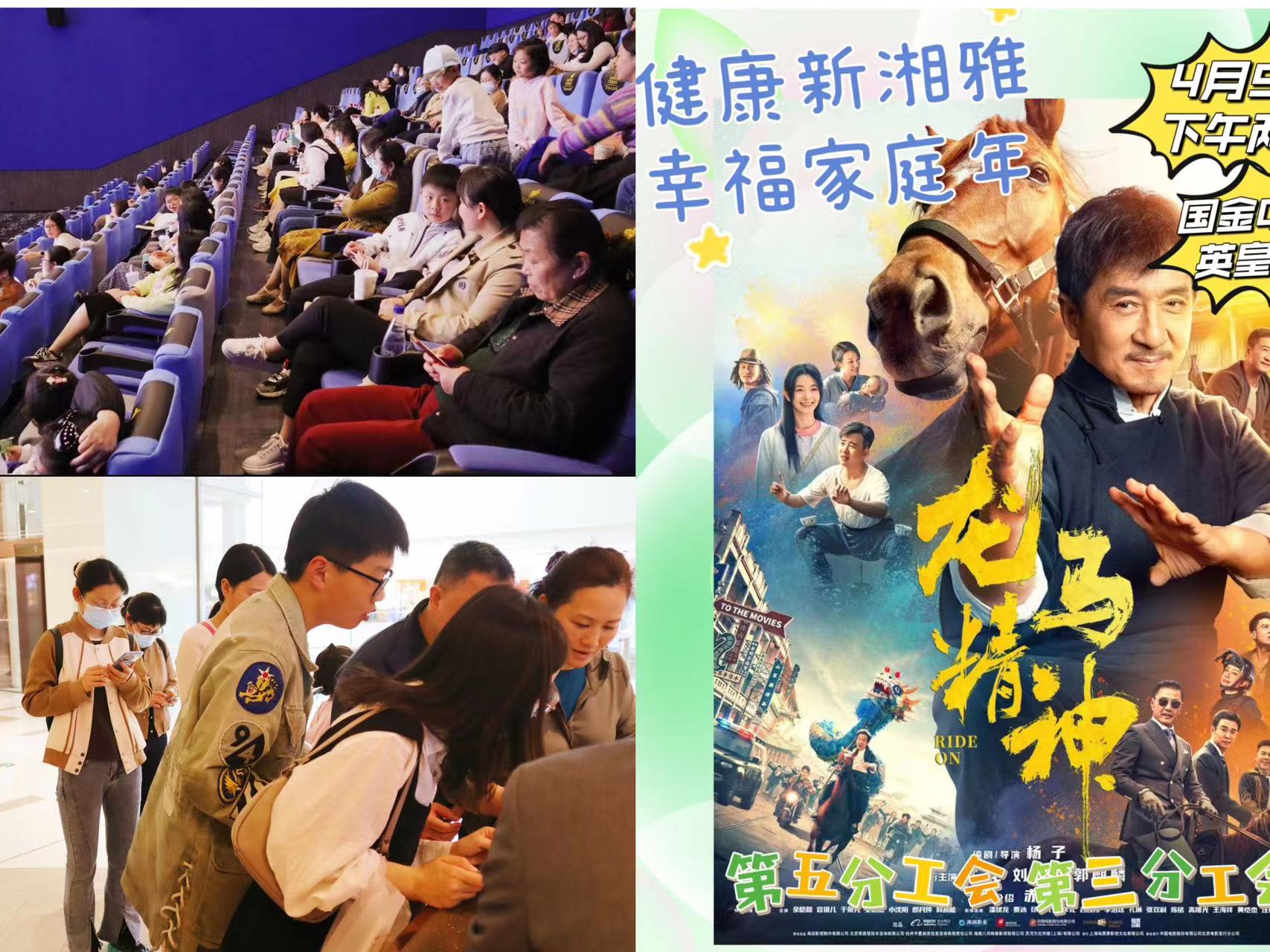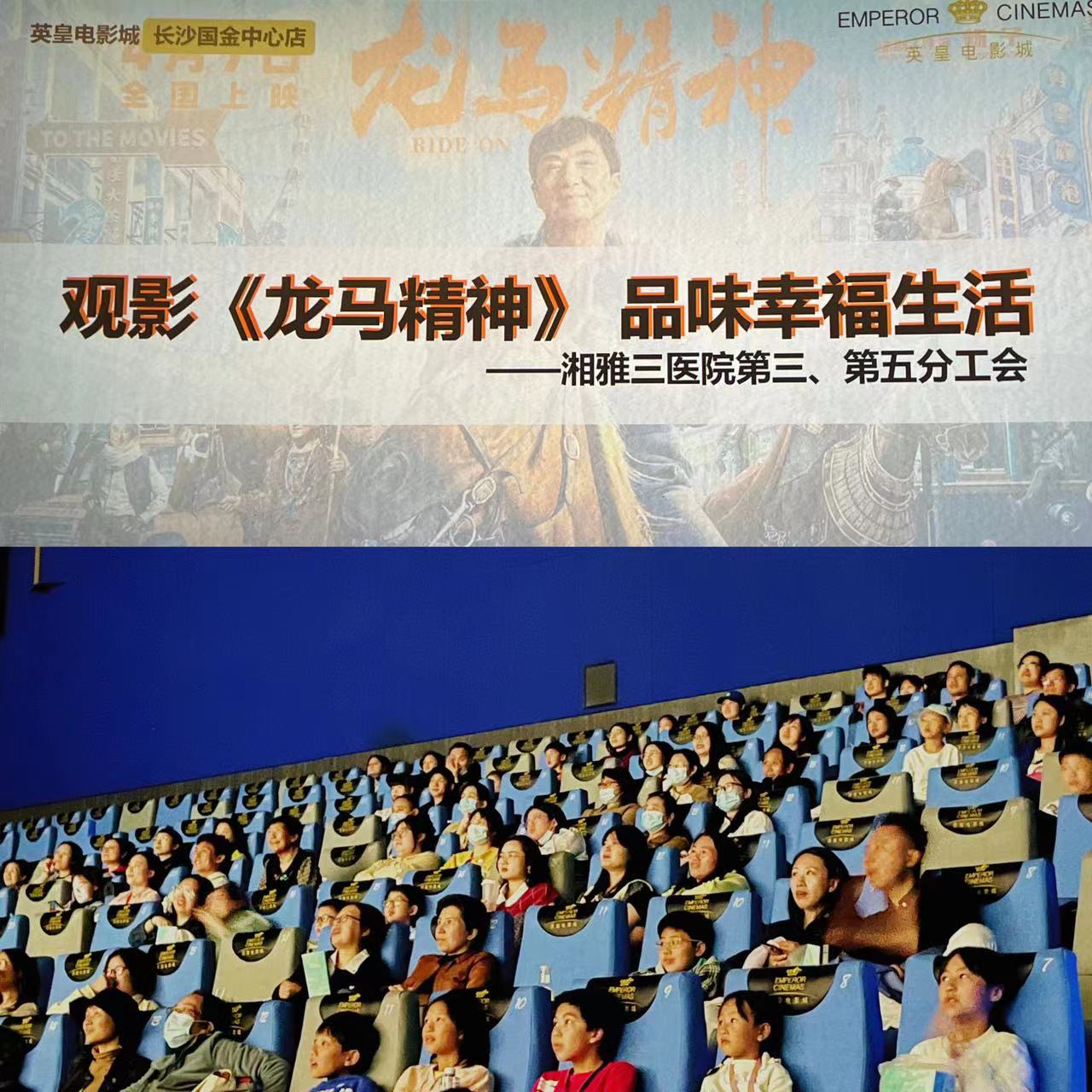 4月9日下午,中南大学湘雅三医院第三、五分工会在国金中心英皇电影城联合开展“观影《龙马精神》 品味幸福生活”主题活动,近300名工会会员及家属集中观看近期上映的电影《龙马精神》,共度周末休闲时光。