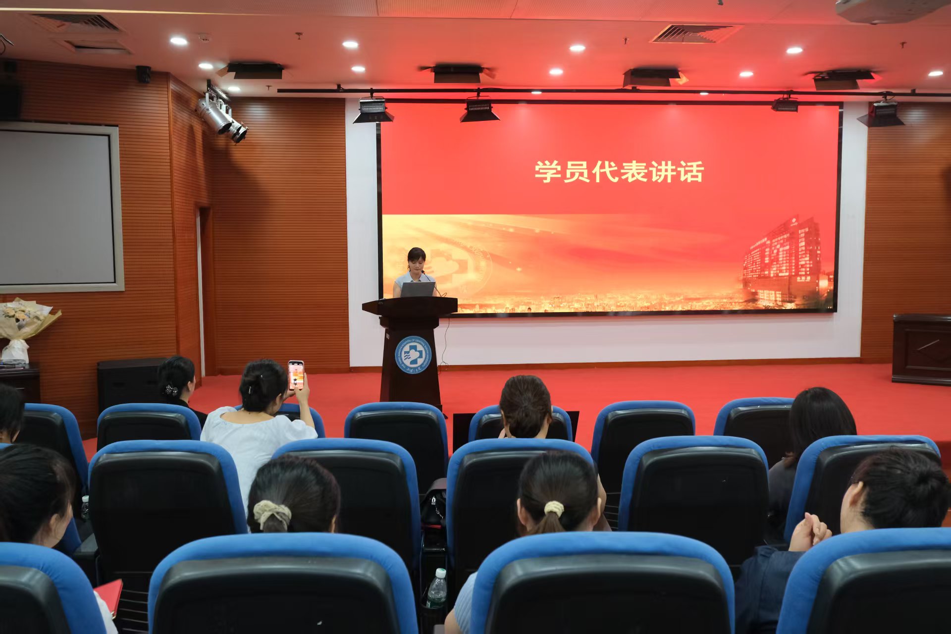 首先,朱姝娟做培训总结,向顺利完成学业的18名学员表示热烈祝贺。向全力支持培训工作的医院领导、科室同事,倾囊相授的导师团队以及默默付出的后勤同仁致以衷心的感谢。她回顾了过去三个月的学习、工作以及生活经历,并期望专科学员们能够学无止境,知行合一,敬畏生命,共同推动妇科护理专业化发展。