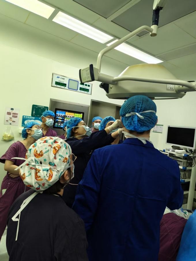 手术室内,监护仪规律的“滴答”声成为唯一的计时器。主治医师罗时超守候在患者床头,一手固定头部,一手轻抚其肩膀,用温和而坚定的声音引导:“跟着我的节奏,吸气,一、二、三……”他镇定的话语如同一颗定心锚,稳住了在窒息边缘挣扎的生命。巡回护士侯欣男轻柔地为患者拭去额头的汗水,这个细微的动作,瞬间让紧绷的空气平添几分暖意。
