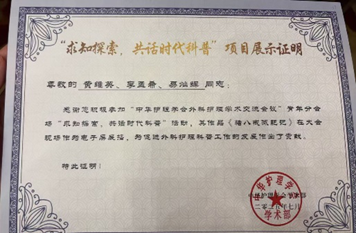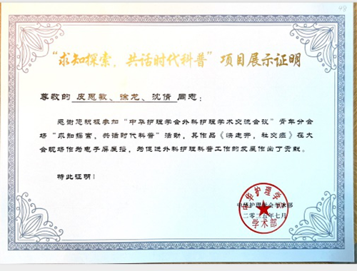 科普展示环节,李孟希代表团队现场汇报作品《系统警告:您的脂肪正在攻击乳腺》,剖析了肥胖与乳腺癌的关联,强调了术后体重管理、患肢锻炼的重要性;另有两项作品入选电子屏展播:皮思敏的《快走开,社交癌》提升了公众对压力性尿失禁的认知;黄维英的《猪八戒减肥记》以动画形式生动科普了科学减脂技巧。