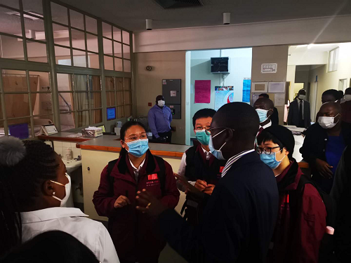 走进医院,在正门口就看到一块纪念碑,上面写着:奇诺伊省立医院——由津巴布韦与中国政府共同投资建设的,于1998年10月30日正式投入使用。原来这是由中国和津巴布韦在90年代共同建设的,也是津方最大最先进的省立医院。整个建筑由一条室内走廊连接,两侧有序的排列着一栋一栋的建筑,整个建筑融为一体,又各成体系,像是一个“非”字形。我们一路走过,看到了熟悉的科室设置,看到了检验室与CT室,也看到了久违的ICU。要知道如此大的建筑规模和规划如此有序的医院,即使是在九十年代的国内省级医院中也是不多见的。可见当时在自己条件有限的情况下,我们对津巴布韦兄弟的全力扶持。