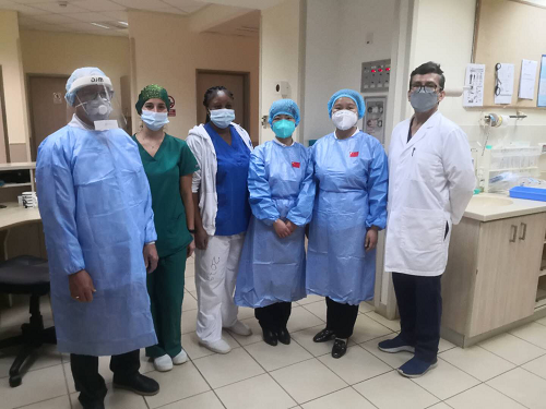 在医院的会议室,我见到了这家医院的Arnando教授。他来自委内瑞拉,是这家医院的ICU专家。在用西班牙语苦苦交流了半小时后,忽然他说出了一句英语,我们才发现其实我们之间还有更好的交流方式,于是现场画风突变,大家都开始说起英语来,气氛被骤然点燃。据他介绍,LA PAZ医院是目前马拉博地区重症救治设备最好的医院,除了呼吸支持外,还能进行血液净化治疗。因此这里是指定的收治具有复杂合并症的新冠患者定点医院。到目前为止,他和他的团队共收治了8名存在多器官功能障碍的患者。听说我在新冠ICU工作过,Arnando教授主动和我交流起新冠患者的救治经验,并陪同我们一起参观他工作的ICU病房。