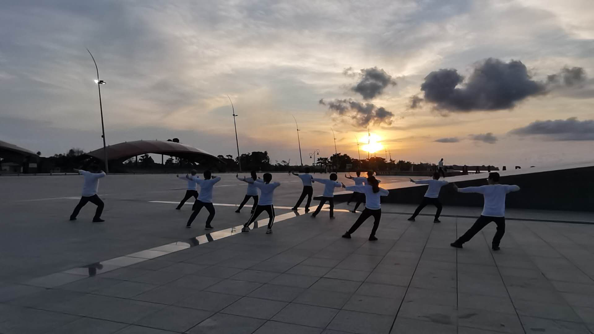 专家组在工作之余练八段锦锻炼身体