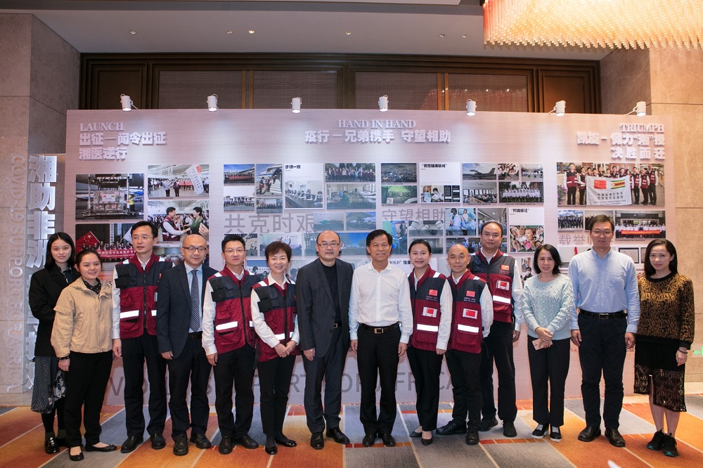 9月29日下午,湖南省医学教育科技学会国际交流合作专委会2020年年会暨中国(湖南)援津巴布韦和赤道几内亚抗疫纪爱心公益展在长沙君悦酒店举行。本次活动由湖南省医学教育科技学会国际交流合作专业委员会主办,湖南省卫健委国际交流中心承办,长沙君悦酒店、长沙广电《公益长沙》协办。湘雅三医院两位援非抗疫专家ICU副主任彭玥、检验科副主任章迪参加本次活动,国际交流合作专委会委员、医院国际合作与交流办主任刘新春应邀参加会议。