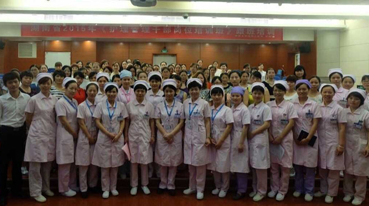 7月9日~10日,湖南省2015年第一期护理管理干部岗位培训班134名学员来我院进行跟班培训。跟班学员有来自全省各二级、三级医院的护士长、科护士长、护理部主任等不同层次的护理管理人员。护理部严谨副主任带队护理部成员及各跟班科室护士长热情接待了跟班学员。